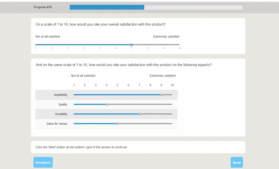 A large number of key question types are available as central features of the software - allowing for quick programming and economical surveys. We also programme using Javascript, giving the power and flexibility to create more complex questions, or to customise the survey to your particular requirements.